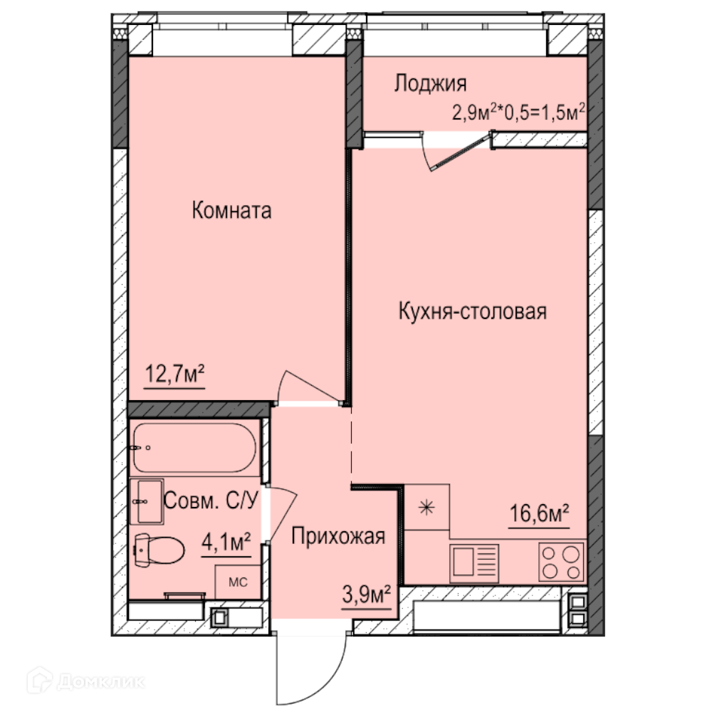 - Количество комнат: 1-комнатная квартира