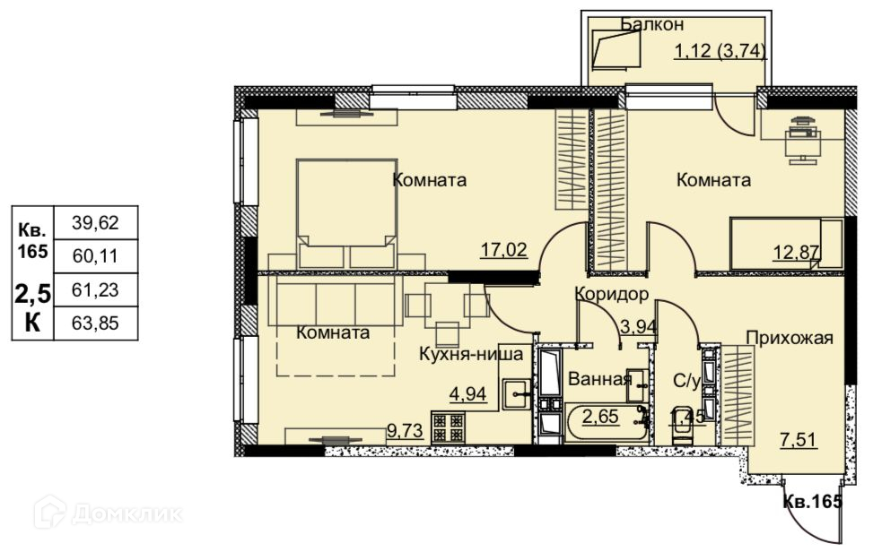 Площади квартир
