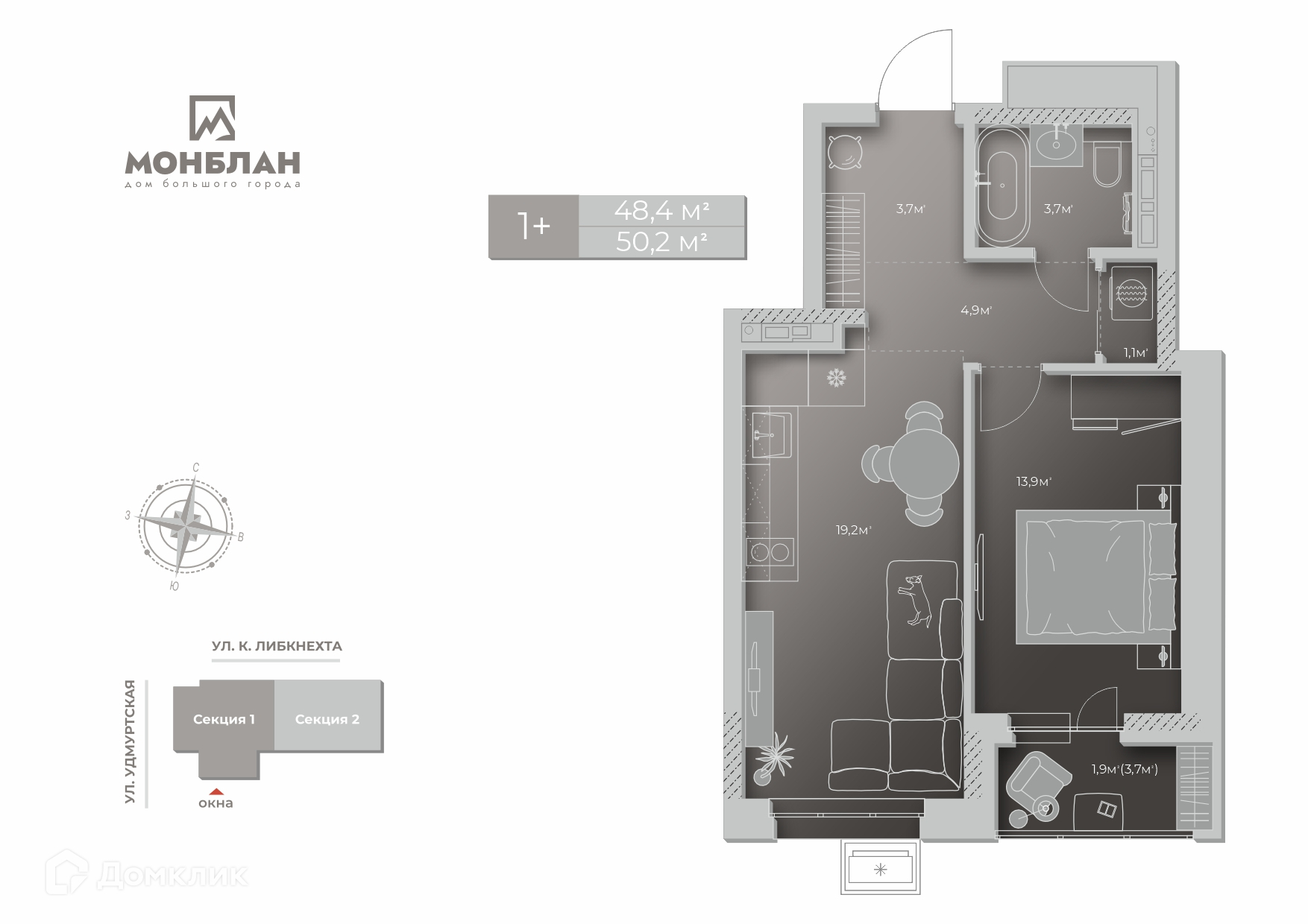 Дом большого города «Монблан» – проект бизнес-класса, где спроектированы квартиры общей площадью от 38.5 до 132.6 кв. м. Монолитно-кирпичное 17-этажное здание расположено в сердце Ижевска в окружении 150+ объектов городской инфраструктуры. Дом создан для красивой жизни: Ландшафтный дизайн придомовой территории – место, где приятно работать и отдыхать. Просторные функциональные холлы уровня премиальных отелей. Два бесшумных скоростных лифта, на которых можно спуститься в теплый паркинг. 149 квартир с увеличенной высотой потолка, окнами в пол, гибкими возможностями зонирования, с отделкой White box. Технические характеристики: Авторское решение по звукоизоляции пола. Увеличенные окна с шестикамерным профилем с тремя контурами уплотнения. Кирпичные стены и теплый фасад. Срок ввода в эксплуатацию: IV квартал 2024 г.