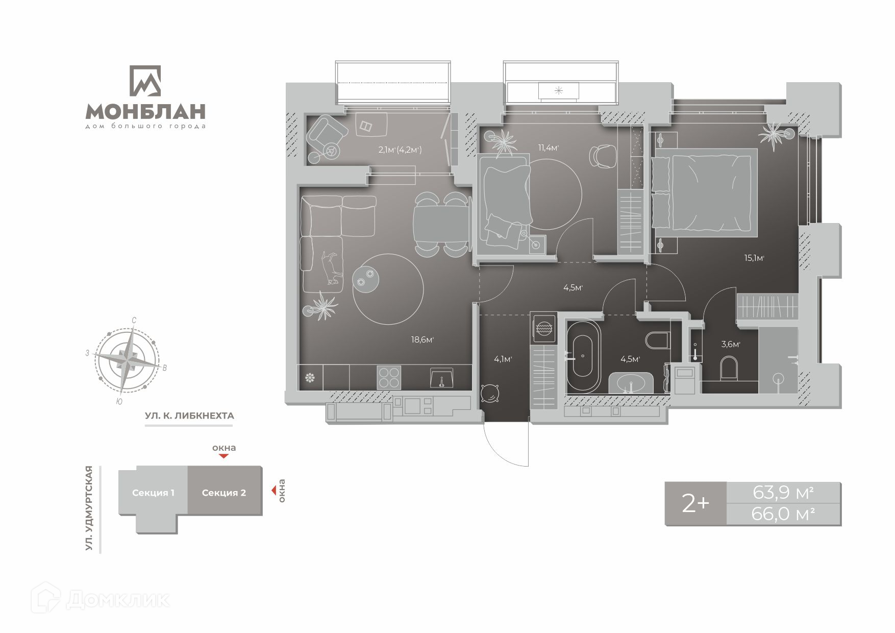 Дом большого города «Монблан» – проект бизнес-класса, где спроектированы квартиры общей площадью от 38.5 до 132.6 кв. м. Монолитно-кирпичное 17-этажное здание расположено в сердце Ижевска в окружении 150+ объектов городской инфраструктуры. Дом создан для красивой жизни: Ландшафтный дизайн придомовой территории – место, где приятно работать и отдыхать. Просторные функциональные холлы уровня премиальных отелей. Два бесшумных скоростных лифта, на которых можно спуститься в теплый паркинг. 149 квартир с увеличенной высотой потолка, окнами в пол, гибкими возможностями зонирования, с отделкой White box. Технические характеристики: Авторское решение по звукоизоляции пола. Увеличенные окна с шестикамерным профилем с тремя контурами уплотнения. Кирпичные стены и теплый фасад. Срок ввода в эксплуатацию: IV квартал 2024 г.