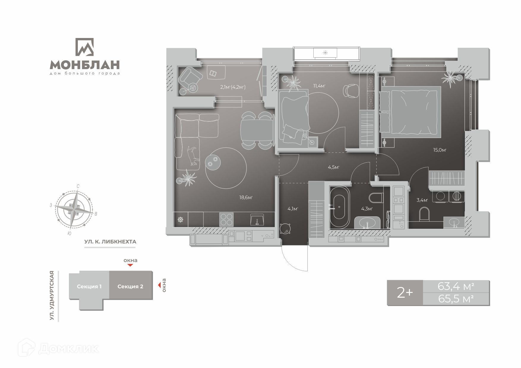 Дом большого города «Монблан» – проект бизнес-класса, где спроектированы квартиры общей площадью от 38.5 до 132.6 кв. м. Монолитно-кирпичное 17-этажное здание расположено в сердце Ижевска в окружении 150+ объектов городской инфраструктуры. Дом создан для красивой жизни: Ландшафтный дизайн придомовой территории – место, где приятно работать и отдыхать. Просторные функциональные холлы уровня премиальных отелей. Два бесшумных скоростных лифта, на которых можно спуститься в теплый паркинг. 149 квартир с увеличенной высотой потолка, окнами в пол, гибкими возможностями зонирования, с отделкой White box. Технические характеристики: Авторское решение по звукоизоляции пола. Увеличенные окна с шестикамерным профилем с тремя контурами уплотнения. Кирпичные стены и теплый фасад. Срок ввода в эксплуатацию: IV квартал 2024 г.