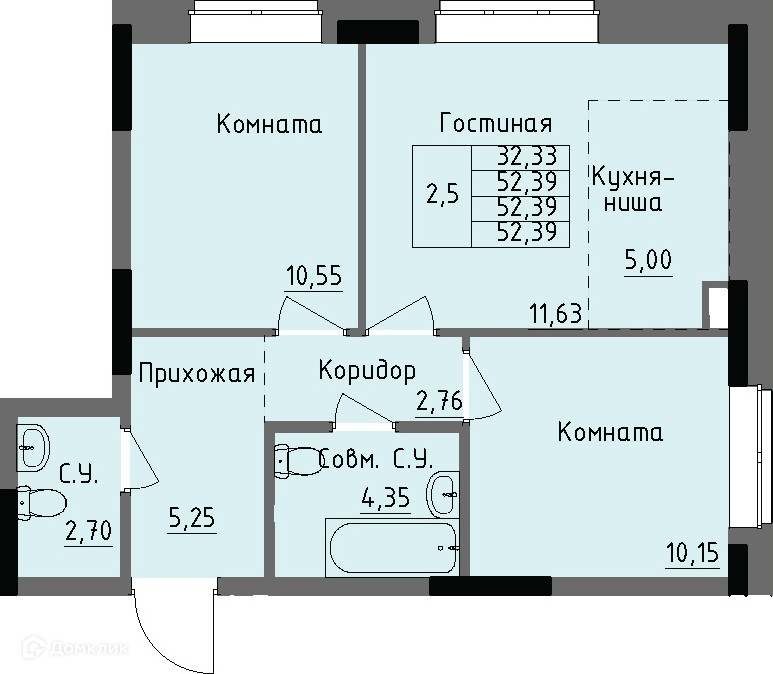 Площади квартир