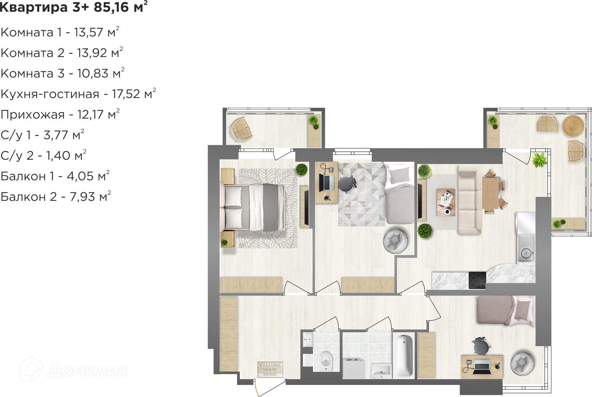 Площади квартир