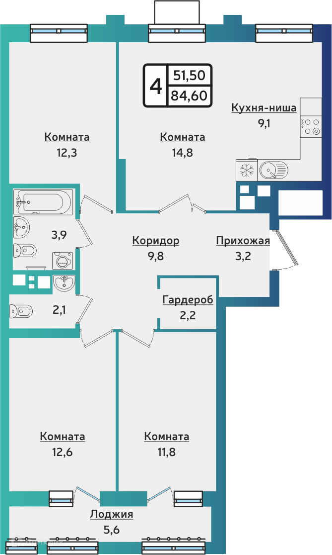 Предлагается 4-комнатная квартира в востребованном жилом комплексе "ЖК ARTNOVA (Артнова)" 🏢. Квартира расположена на 4-м этаже 18-этажного дома. Отличный вариант для инвестиций.