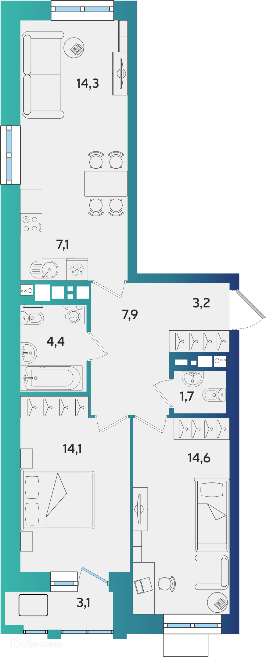 Площади квартир