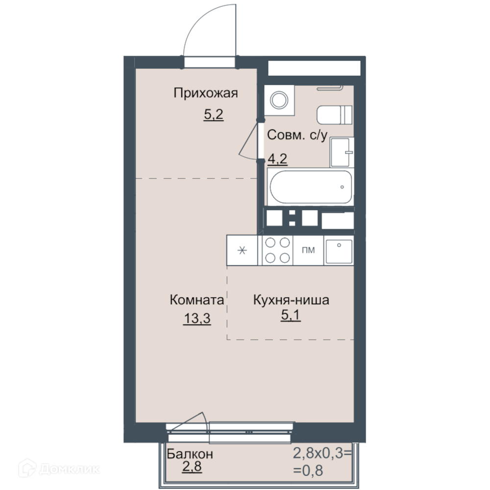 - ✅ Кухня: 5 м² — эргономичное пространство.