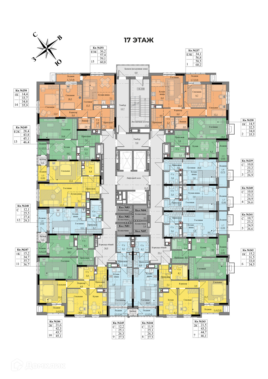Площади квартир