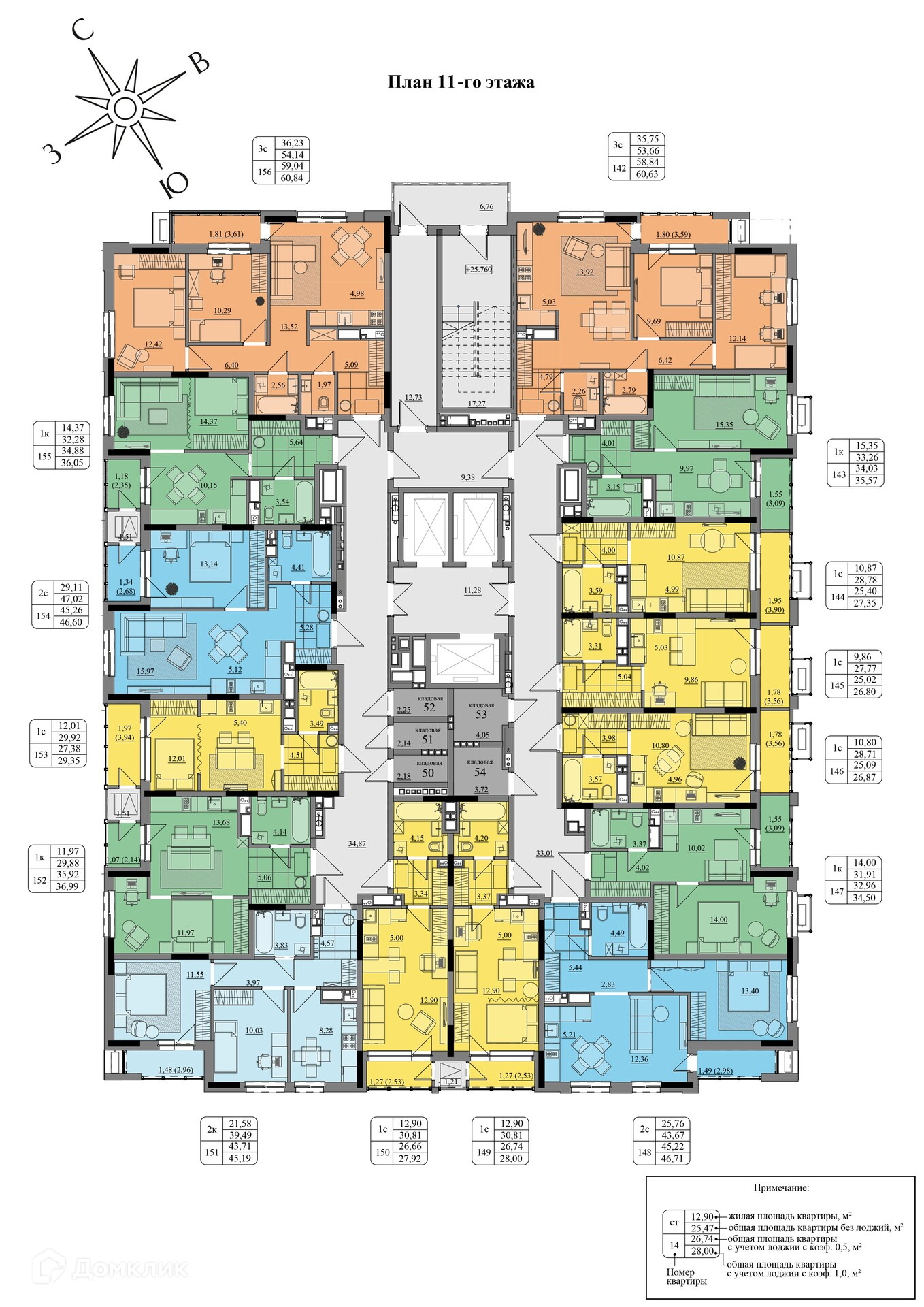 Площади квартир