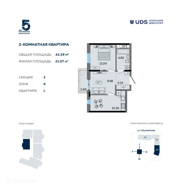 2 комн. квартира в Ижевске в ипотеку от 62 133 руб/месяц