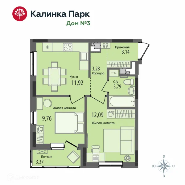 2 комн. квартира в Ижевске в ипотеку от 42 968 руб/месяц