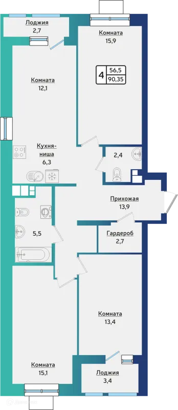 4 комн. квартира в Ижевске в ипотеку от 65 601 руб/месяц