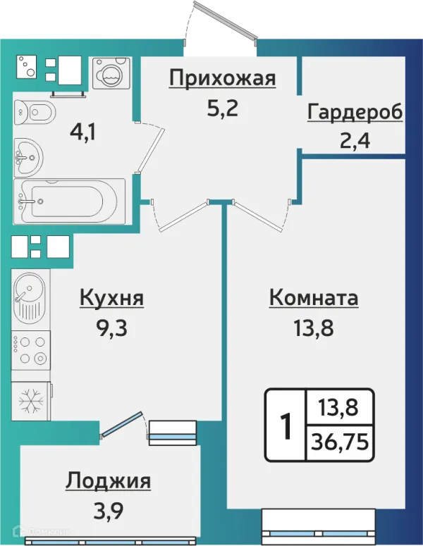 1 комн. квартира в Ижевске в ипотеку от 36 509 руб/месяц