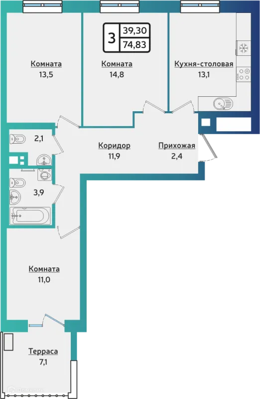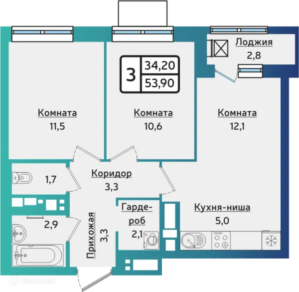 3 комн. квартира в Ижевске в ипотеку от 57 608 руб/месяц