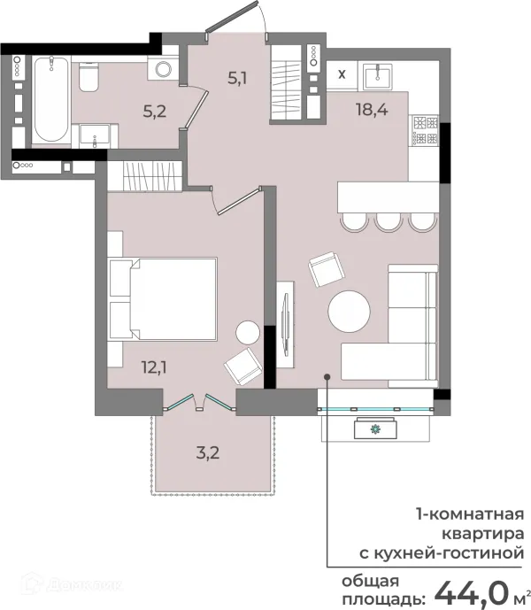 1 комн. квартира в Ижевске в ипотеку от 44 333 руб/месяц