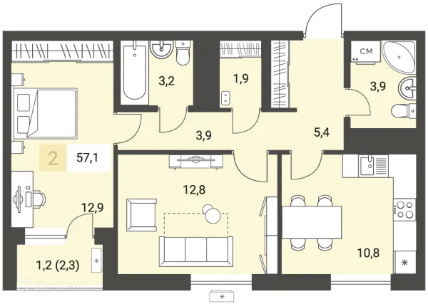 2 комн. квартира в Ижевске в ипотеку от 55 679 руб/месяц