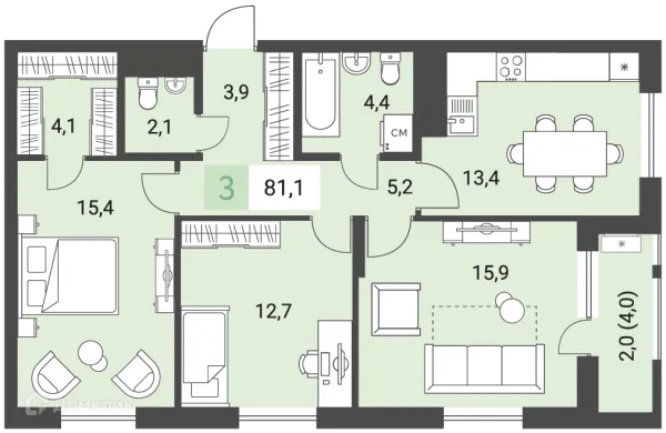3 комн. квартира в Ижевске в ипотеку от 77 436 руб/месяц