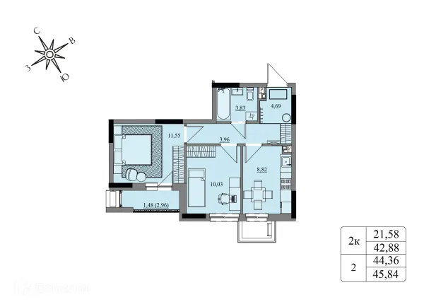 2 комн. квартира в Ижевске в ипотеку от 36 869 руб/месяц