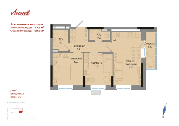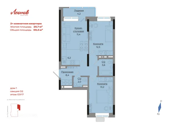 2 комн. квартира в Ижевске в ипотеку от 59 213 руб/месяц
