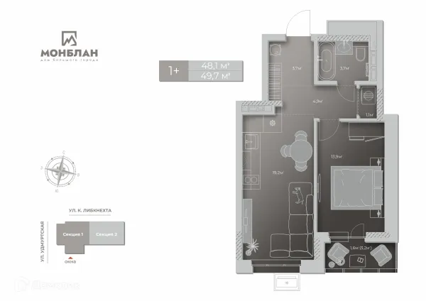1 комн. квартира в Ижевске в ипотеку от 45 099 руб/месяц