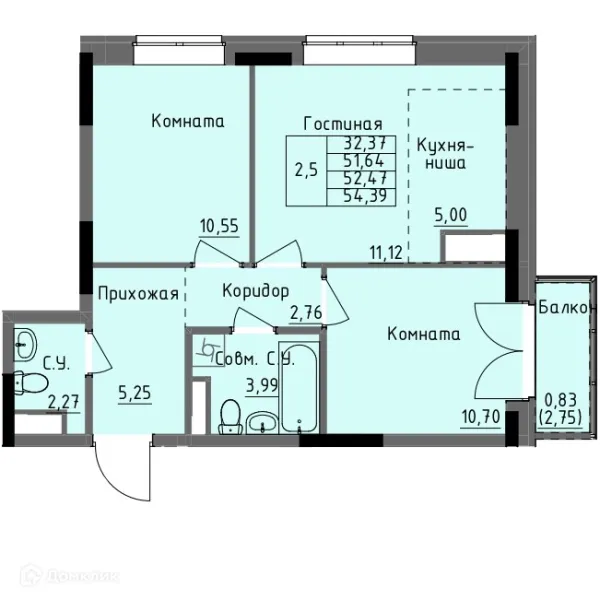 2 комн. квартира в Ижевске в ипотеку от 54 619 руб/месяц