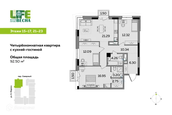 4 комн. квартира в Ижевске в ипотеку от 85 534 руб/месяц