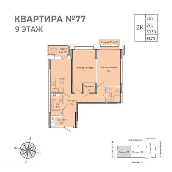 2 комн. квартира в Ижевске в ипотеку от 45 459 руб/месяц