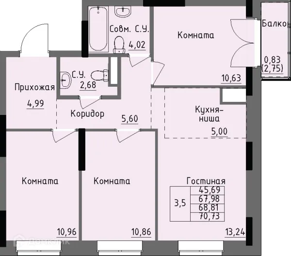 3 комн. квартира в Ижевске в ипотеку от 66 875 руб/месяц