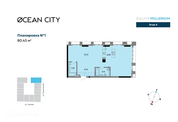 3 комн. квартира в ЖК Ocean City (Оушен сити)