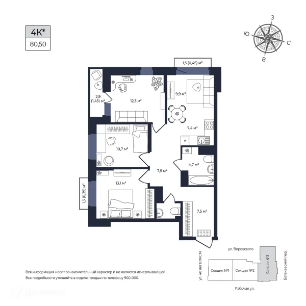 3 комн. квартира в Ижевске в ипотеку от 104 022 руб/месяц