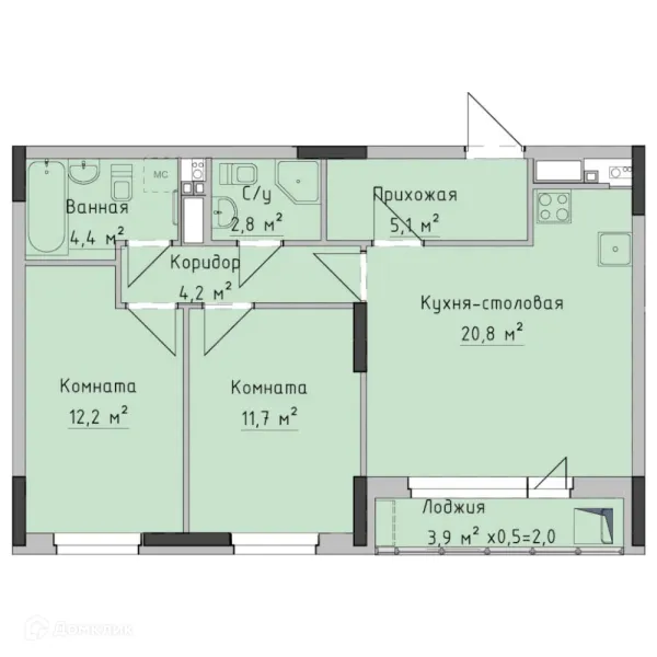 2 комн. квартира в Ижевске в ипотеку от 45 584 руб/месяц
