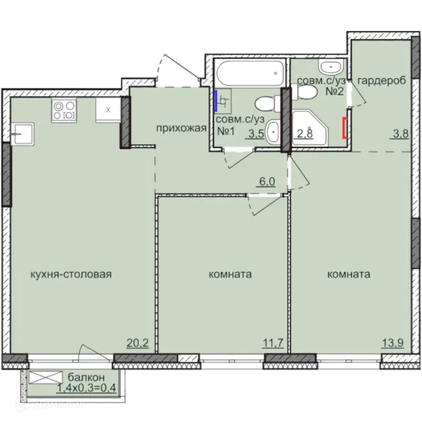2 комн. квартира в Ижевске в ипотеку от 43 695 руб/месяц