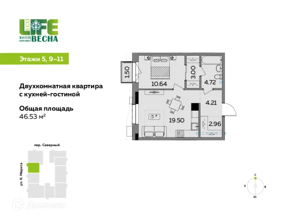 2 комн. квартира в Ижевске в ипотеку от 48 405 руб/месяц