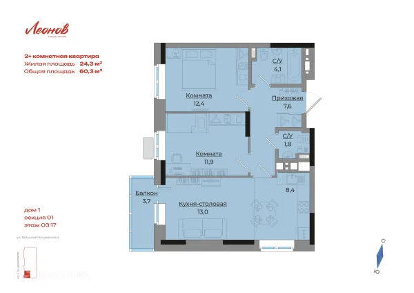 2 комн. квартира в Ижевске в ипотеку от 55 303 руб/месяц