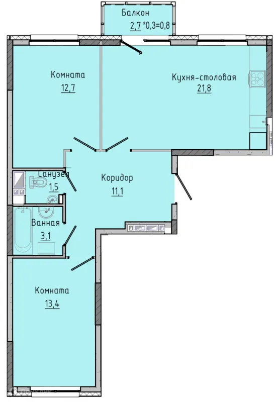 2 комн. квартира в Ижевске в ипотеку от 55 313 руб/месяц