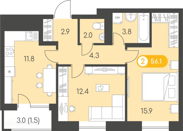 2 комн. квартира в Ижевске в ипотеку от 52 996 руб/месяц