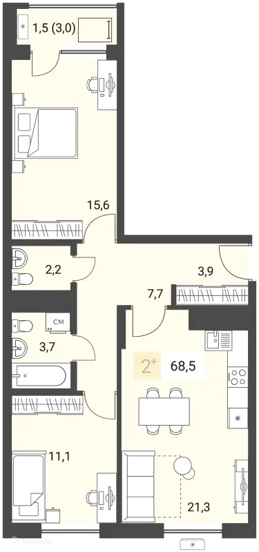 2 комн. квартира в Ижевске в ипотеку от 66 080 руб/месяц