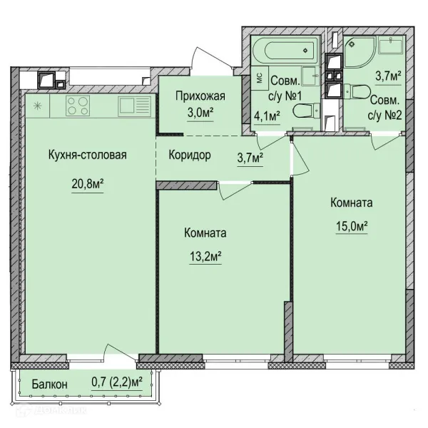 2 комн. квартира в Ижевске в ипотеку от 45 027 руб/месяц