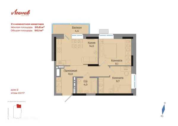 2 комн. квартира в Ижевске в ипотеку от 44 639 руб/месяц
