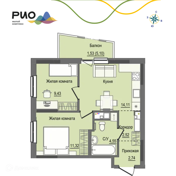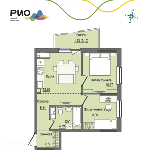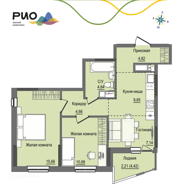2 комн. квартира в Ижевске в ипотеку от 58 522 руб/месяц