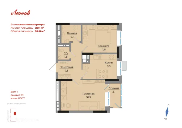 2 комн. квартира в Ижевске в ипотеку от 58 652 руб/месяц