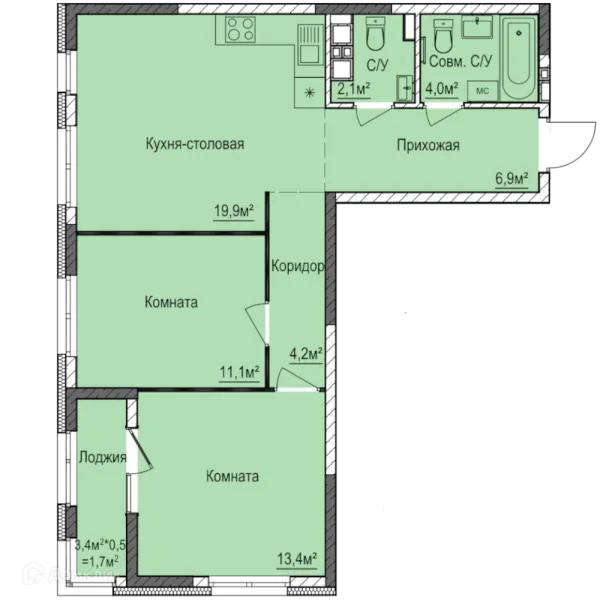 2 комн. квартира в Ижевске в ипотеку от 34 174 руб/месяц