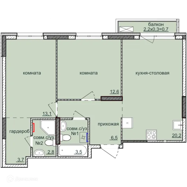 2 комн. квартира в Ижевске в ипотеку от 44 883 руб/месяц