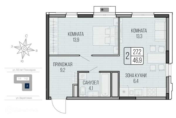 2 комн. квартира в Ижевске в ипотеку от 49 031 руб/месяц