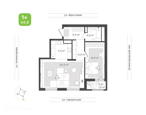 2 комн. квартира в Ижевске в ипотеку от 60 553 руб/месяц