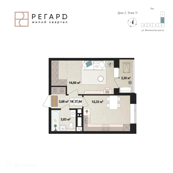 1 комн. квартира в Ижевске в ипотеку от 31 972 руб/месяц