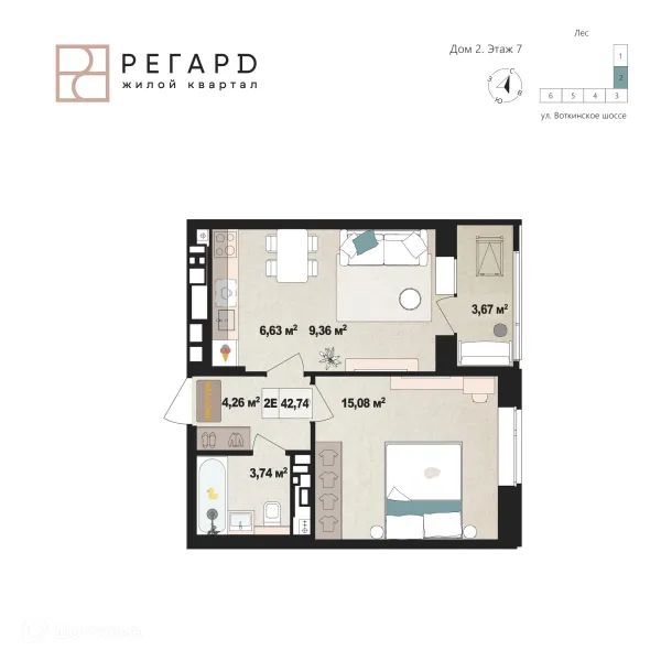 2 комн. квартира в Ижевске в ипотеку от 44 790 руб/месяц