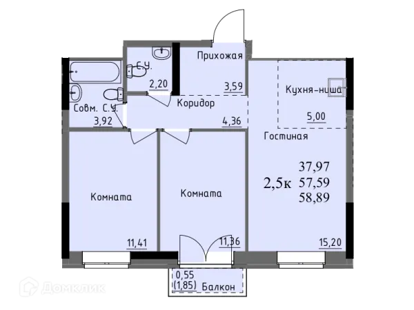 2 комн. квартира в Ижевске в ипотеку от 40 469 руб/месяц