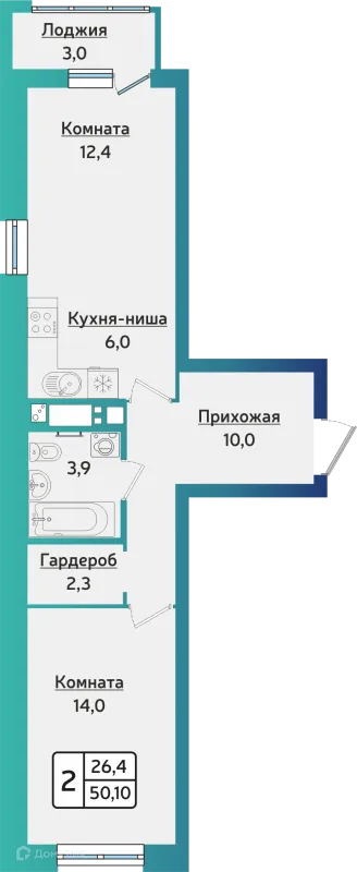 2 комн. квартира в Ижевске в ипотеку от 49 907 руб/месяц