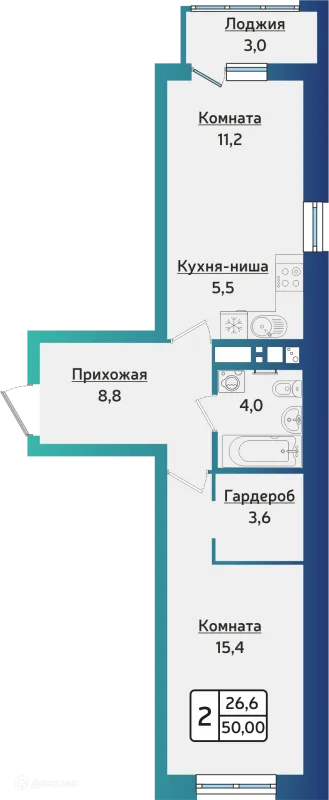 2 комн. квартира в Ижевске в ипотеку от 50 839 руб/месяц
