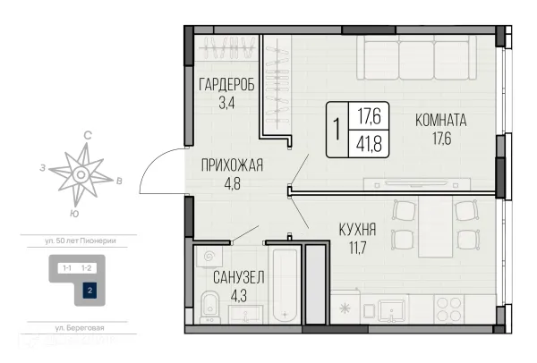 1 комн. квартира в Ижевске в ипотеку от 48 275 руб/месяц